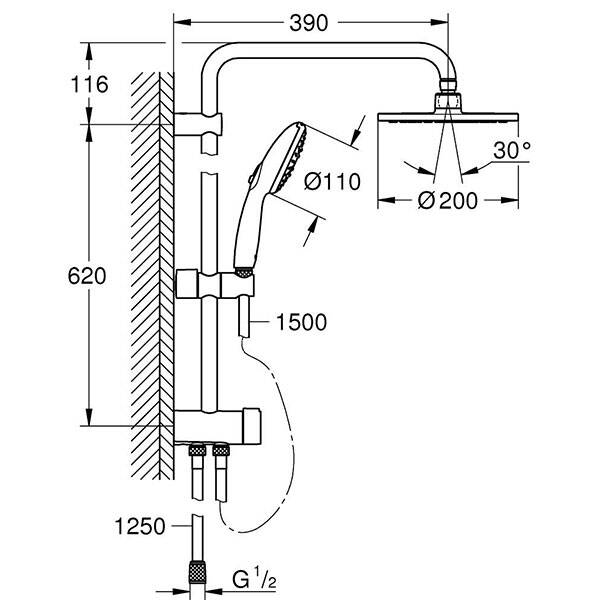 ● 390 mm duş dirseği, açı montaj öncesinde ayarlanabilir