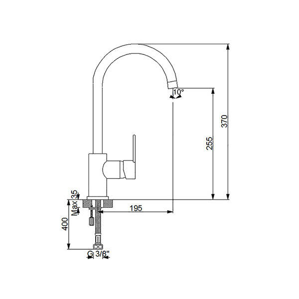 – Çıkış ucu yüksekliği 255 mm’dir.