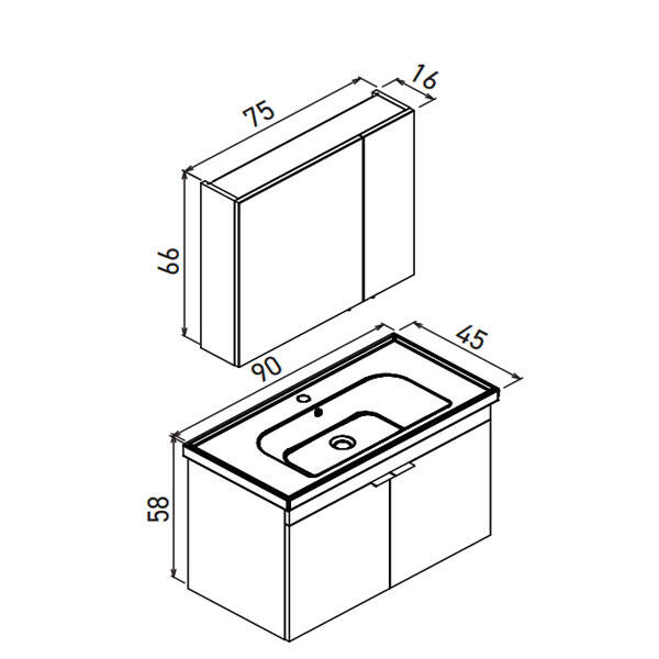 Orka Desna 90 cm Ayna Dolaplı Banyo Dolabı