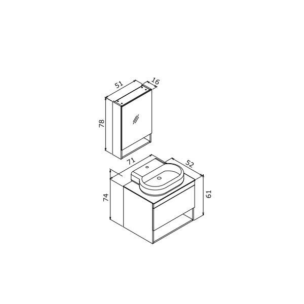 Orka Knidos 70 cm Takım Ayna Dolaplı Banyo Dolabı
