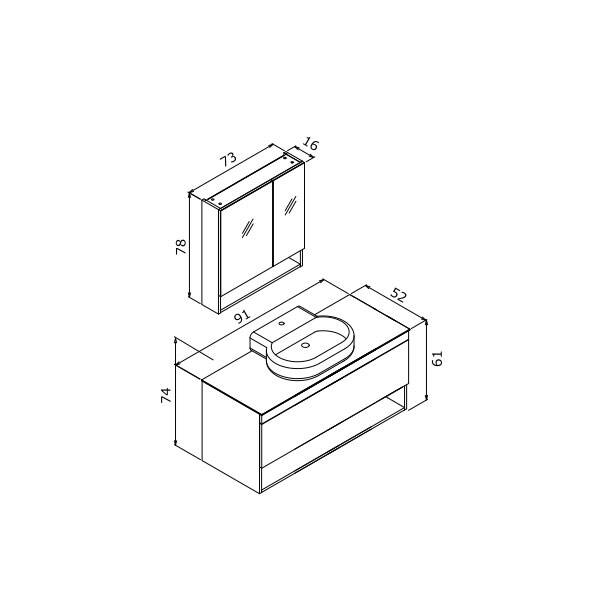 Orka Knidos 90 cm Takım Ayna Dolaplı Banyo Dolabı