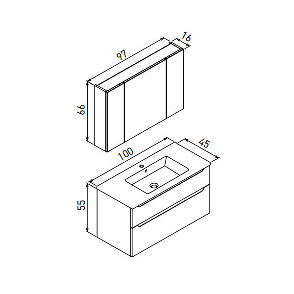 Orka Messina Thermold Ayna Dolaplı 100 cm Banyo Dolabı