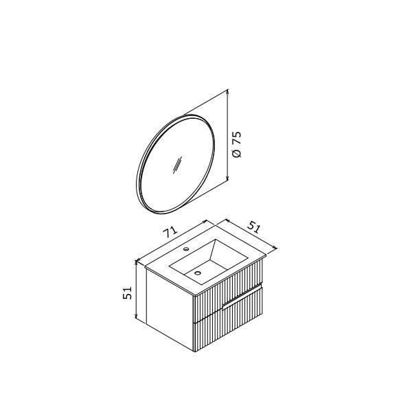 Orka Moonlight Çift Çekmeceli, Seramik Lavabolu 70 cm Banyo Dolabı
